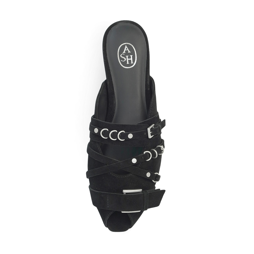 - 아쉬만의 락 시크 무드의 멀티 스트랩과 펀칭 디테일이 발을 고급스럽게 감싸주는 샌들