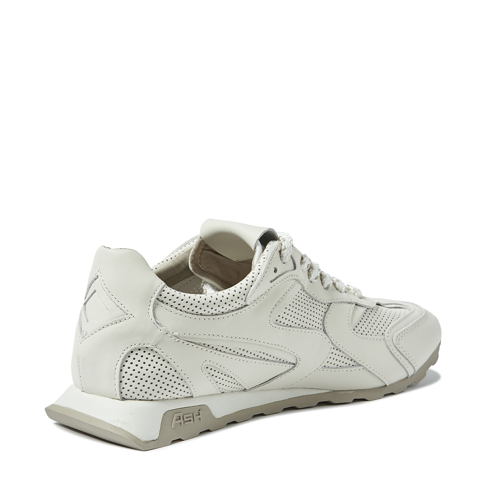 - 사선으로 날렵하게 뻗은 화이트 컬러 아웃솔에 아쉬 로고가 새겨진 그레이 톤의 밑창이 조화를 이루는 스니커즈