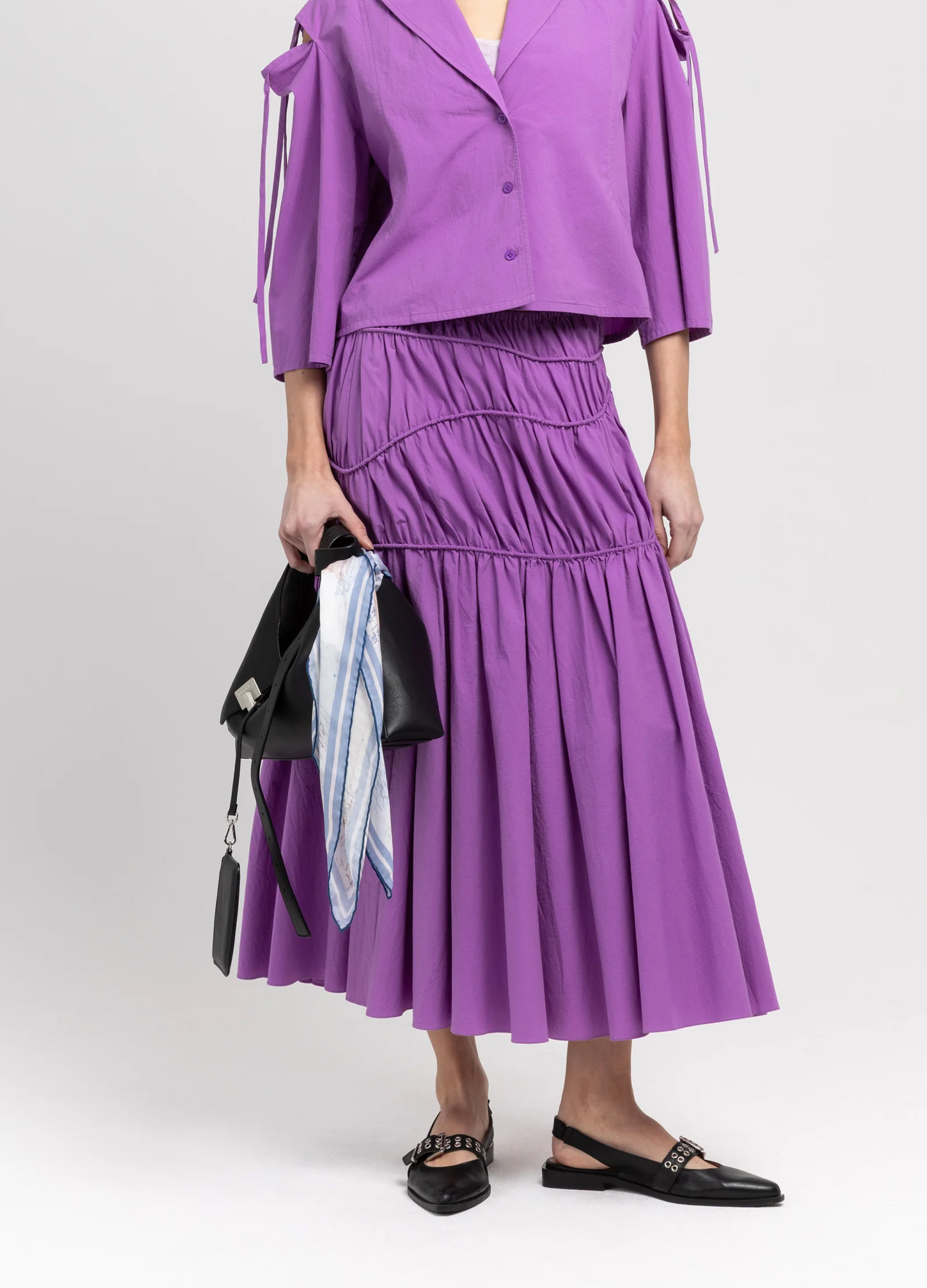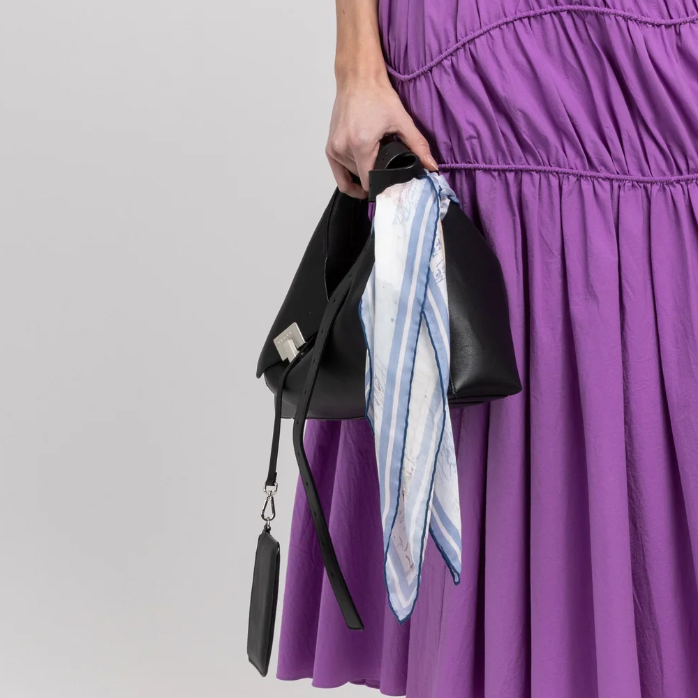 블루와 누드 콤비 추상 프린트가 세련된 무드의 모달 실크 혼방 스카프