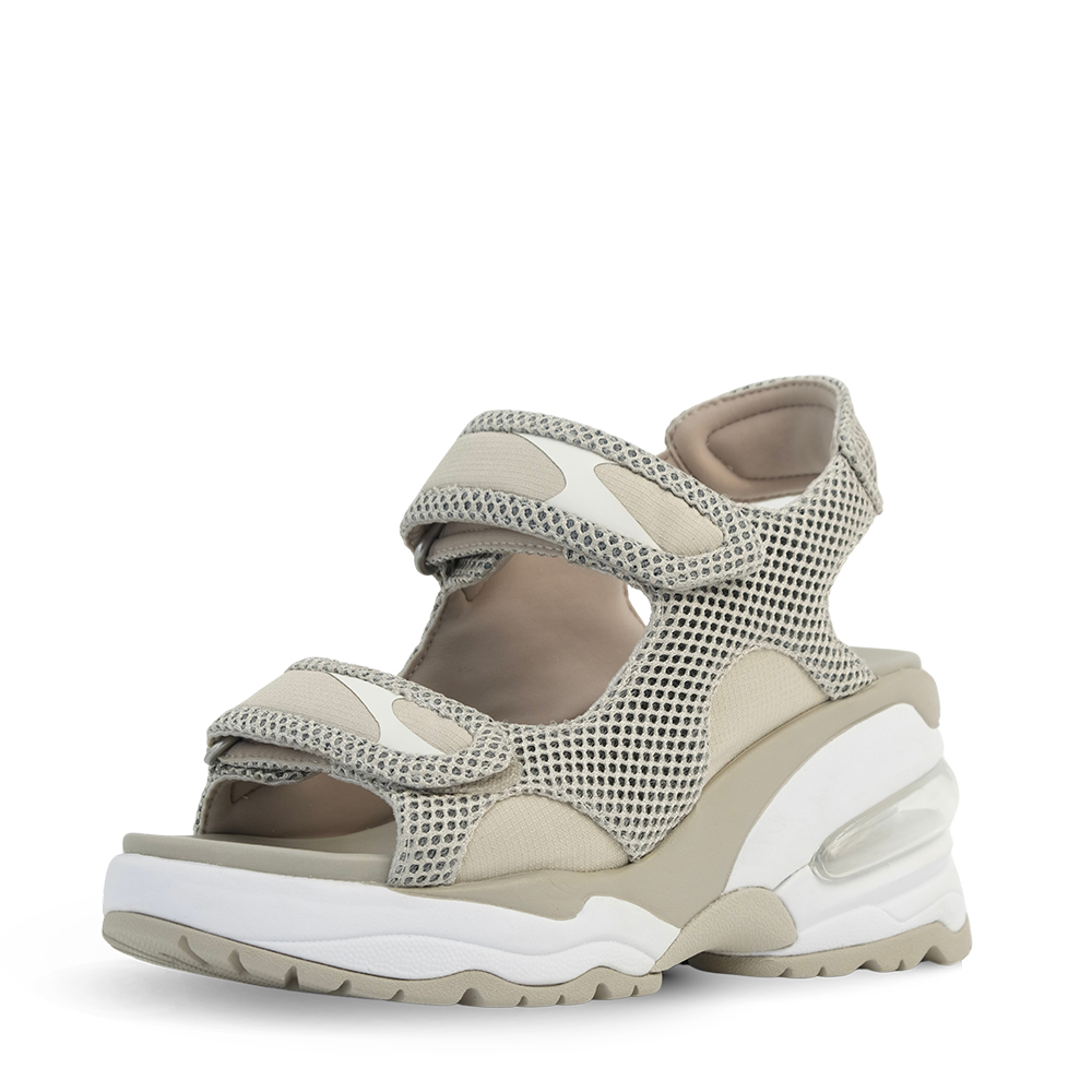 - 청키한 실루엣의 에어힐로 안정적이면서도 편안한 착화감을 선사하는 웨지 샌들