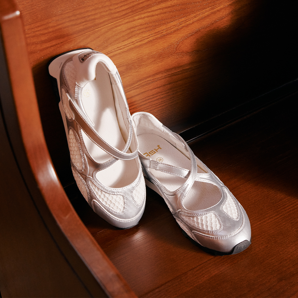 - 부드러운 천연 가죽과 통기성 좋은 메쉬 소재를 믹스해 가볍고 편안한 착화감을 선사하는 메리제인 스니커즈