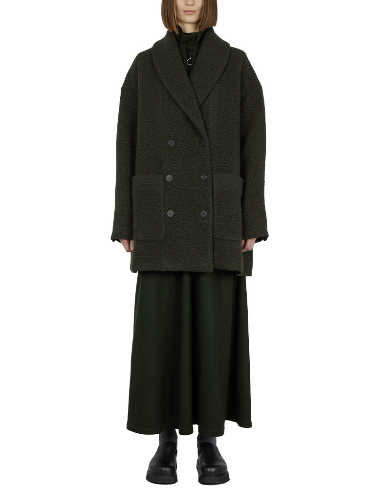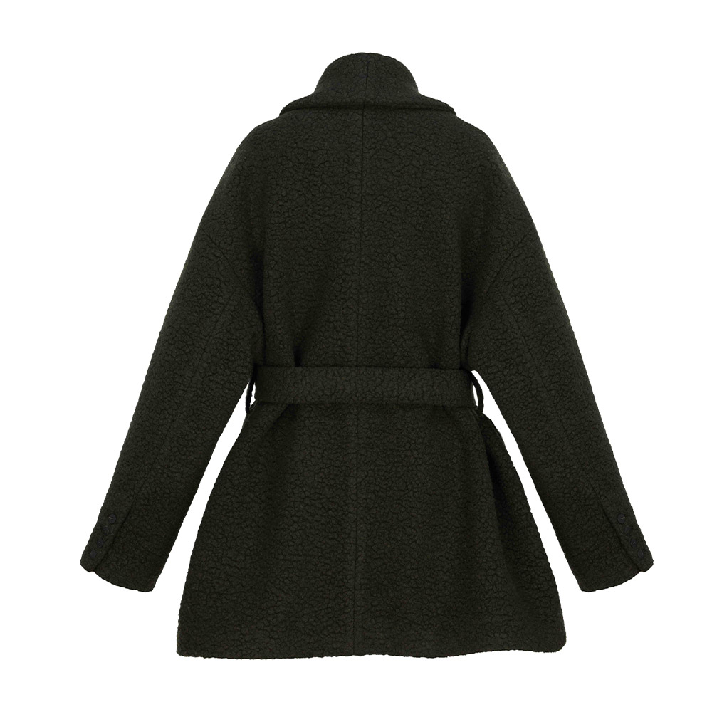 더블 버튼 하프 롱 울 코트. 로브스타일로 허리 조절이 가능한 트렌디한 미디움 기장감