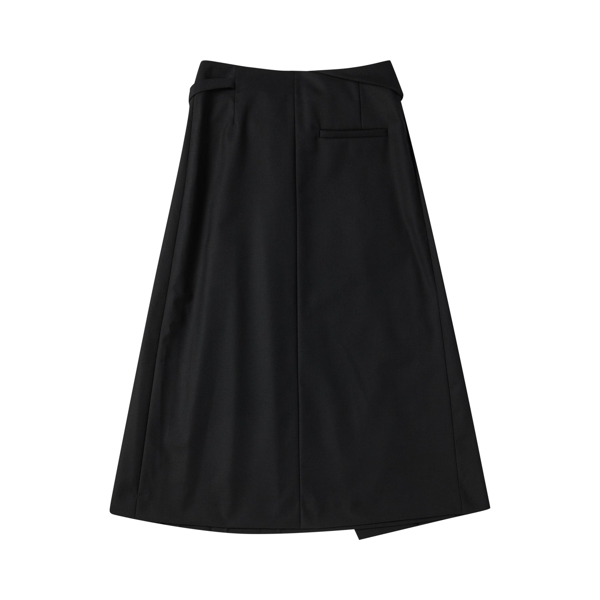 벨트 디테일과 플리츠 조합이 우아한 미디 스커트