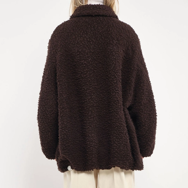 부클 소재와 볼륨있는 슬리브 디테일이 귀여운 무드의 셔츠형 점퍼