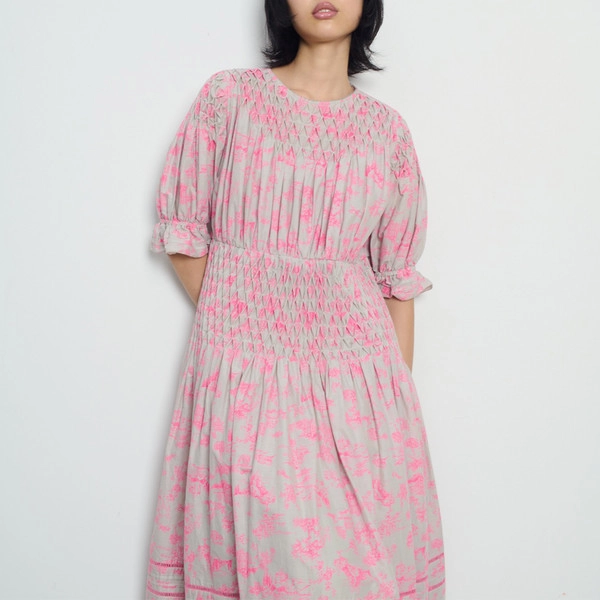 화려한 색감과 수채화 느낌이 조화를 이루는 일러스트레이팅 패턴을 통해 옷 위에서 펼쳐지는 스토리 텔링이 인상적이다.