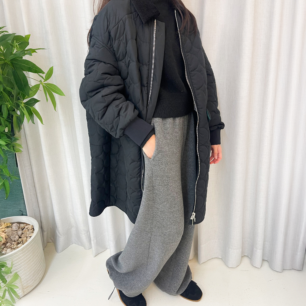 원형 패턴으로 퀼티드 된 롱 집업 점퍼