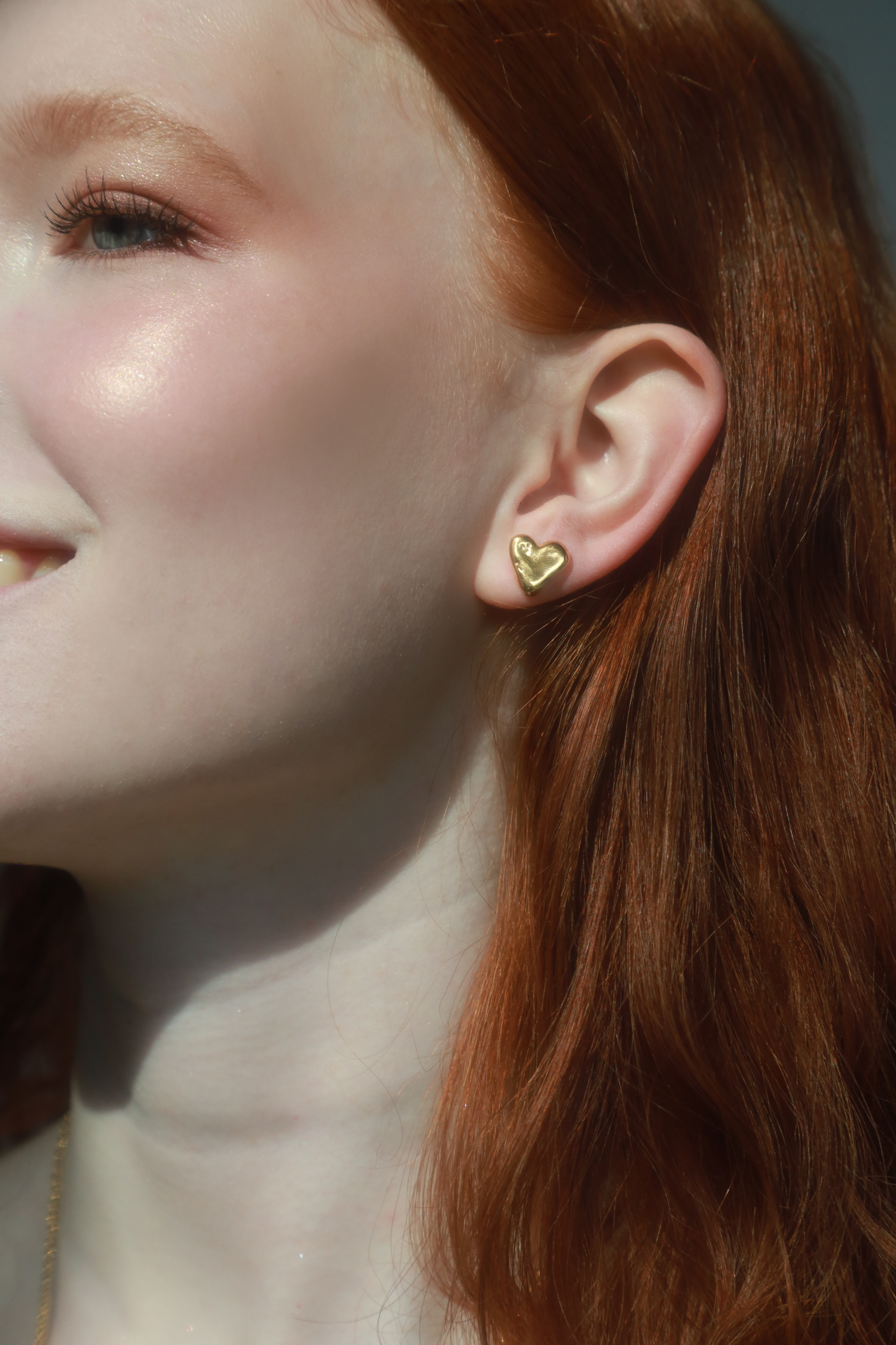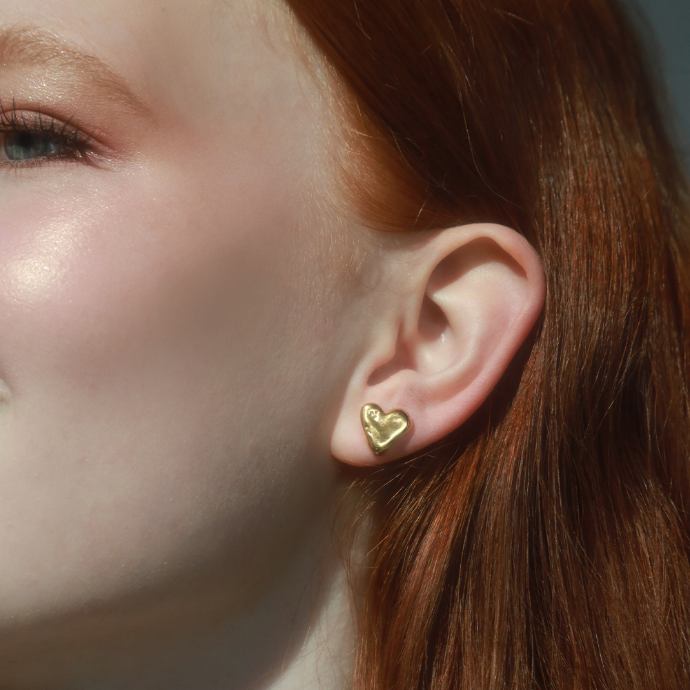 앤틱한 골드 컬러의 심플 하트 귀걸이. 24K 골드 도금으로 심플하면서도 존재감 있는 제품
